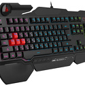 Состав: клавиатура • Назначение: настольный компьютер • Подключение: проводное (USB) • Конструкция: игровая • Цвет: черный • Количество клавиш: 104 • Подставка под запястья: есть, встроенная • Встроенная подсветка: есть • Регулировка наклона: есть • Ход клавиш: 1.5 мм • Защита клавиатуры: от воды, от пыли • Кабели: клавиатура - • Размеры клавиатуры: 466x205x38 мм • Вес клавиатуры: 912 г