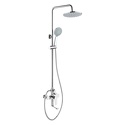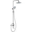 Устройство: душевая система • Смеситель: джойстик • Ручной душ (душевая лейка): размер 120 мм, настройки 5 шт • Верхний душ (тропический): размер 200 мм, настройки 1 шт • Комплектация: ручной душ, верхний душ, смеситель, стойка, шланг, крепление ручного душа