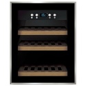 Тип: однокамерный винный шкаф • Расположение: отдельностоящий • Количество компрессоров: 1 • Цвет: нерж.сталь, чёрный • Размеры (ШxВxГ): 395x515x510 мм • Количество дверей: однодверный • Винный шкаф: 12 бут. • Управление: цифровой дисплей, электронное • Материал полок: дерево • Класс энергопотребления: A • Годовой расход энергии: 117 кВтч
