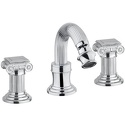 Назначение: для биде • Конструкция: двухрычажный • Монтаж: горизонтальный • Клапан: керамический • Материал: латунь, покрытие - хром • Подводка: гибкая • Монтажные отверстия: 3 отверстия • Форма излива: традиционная • Душевая лейка в комплекте: нет • Аэратор: есть • Донный клапан в комплекте: есть