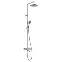 Устройство: душевая система • Смеситель: термостатический • Ручной душ (душевая лейка): размер 110 мм, настройки 5 шт • Верхний душ (тропический): размер 233 мм, настройки 1 шт • Комплектация: ручной душ, верхний душ, смеситель, стойка, шланг, крепление ручного душа