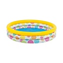 Яркий бассейн из крепкого винила, выполненный в виде трех больших кругов с волнообразным рисунком, обязательно понравится детям и станет достойным украшением пейзажа на даче или во дворе Вашего дома.