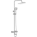 Душевая система с термостатом. В комплекте: смеситель с термостатом и поворотным изливом, телескопическая штанга, верхний душ d265 мм с регулируемым углом наклона, ручной душ, регулируемый по высоте и наклону держатель, шланг 1500 мм в металлической оплетке.