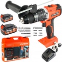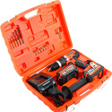 Комплектация- дополнительная рукоятка- ограничитель глубины сверления- зарядное устройство- 2 аккумулятора (21В/4А)- 6 сверл- 6 бит- адаптер для бит- документацияПоставляется в пластиковом кейсе
