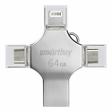 Производитель: Smartbuy Модель: MC15 Metal Quad 64GB SB064GBMC15 - 64 ГБ - USB 3.2 Gen 1 Type-A/Type-C/microUSB/Lightning (5 Гбит/сек) - с колпачком Описание
