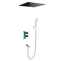 Устройство: душевая система • Смеситель: термостатический • Ручной душ (душевая лейка): размер 80 мм, настройки 3 шт • Верхний душ (тропический): размер 500 мм, настройки 1 шт • Комплектация: ручной душ, верхний душ, смеситель, шланг, крепление ручного душа