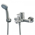 Назначение: универсальный • Конструкция: однорычажный • Монтаж: вертикальный • Клапан: керамический • Материал: латунь, покрытие - хром • Подводка: жесткая • Монтажные отверстия: 2 отверстия • Форма излива: традиционная • Душевая лейка в комплекте: есть • Держатель для душевой лейки: настенный держатель • Донный клапан в комплекте: есть