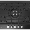Поверхность: варочная панель • Тип поверхности: газовая • Рабочая поверхность: закаленное стекло • Число конфорок: 5 • Установка: независимая • Газовые конфорки: всего - 5 (1 конфорка "Тройная корона") • Газ-контроль конфорок: есть • Тип управления: механическое • Переключатели: поворотные • Электроподжиг: есть, автоматический • Размеры: 700x510 мм • Цвет: панель - черный